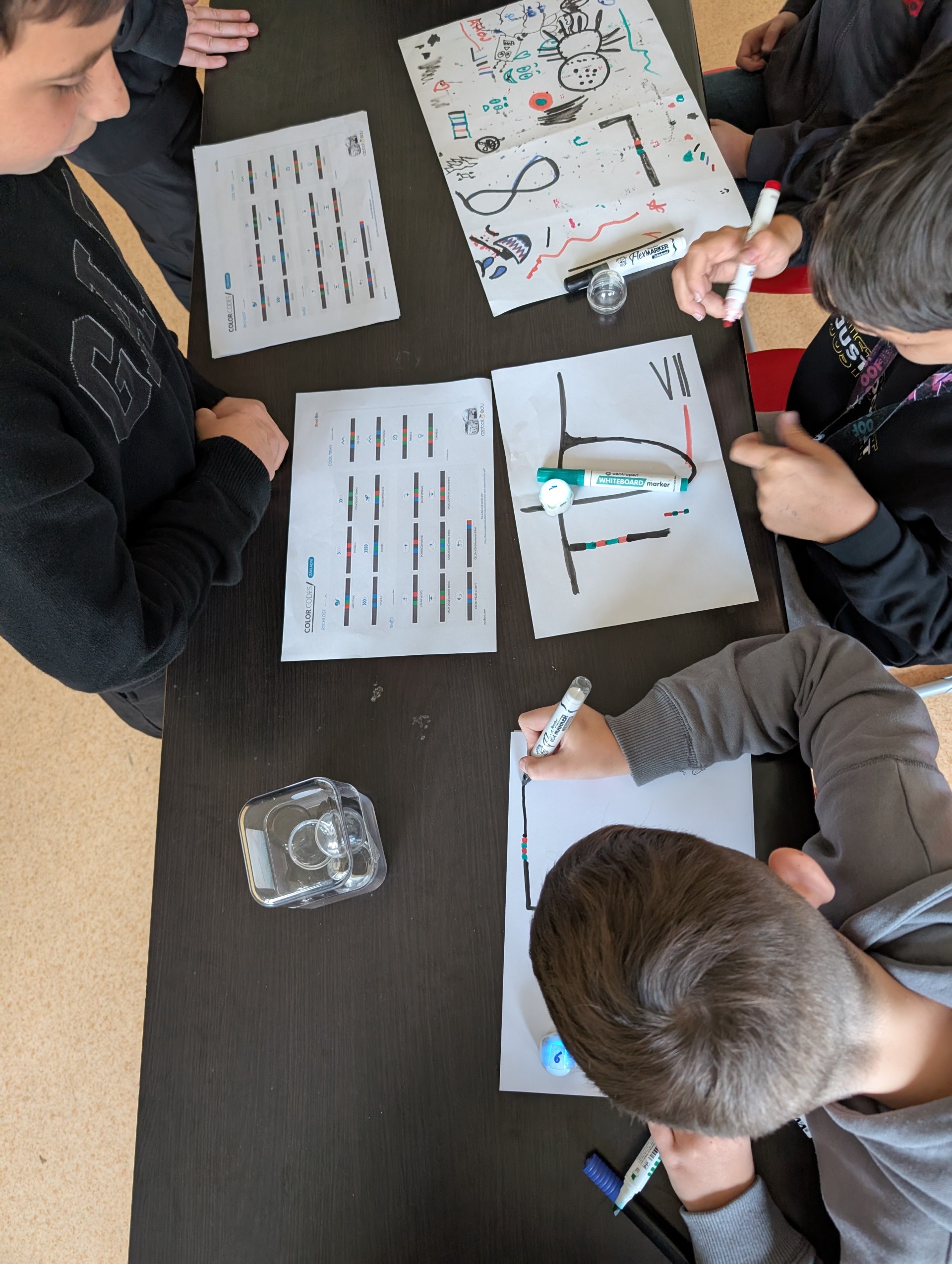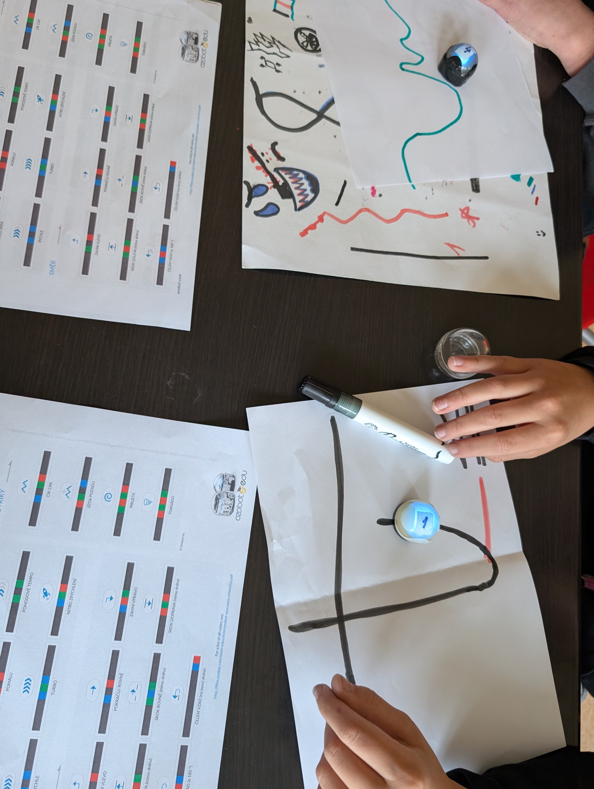 Šesťáci se zase seznámili s drobnými roboty Ozoboty, které ovládali pomocí barevného kódování. Pomocí čar a barev určovali robotům pokyny a hravou formou tak pronikli do základů algoritmického myšlení.