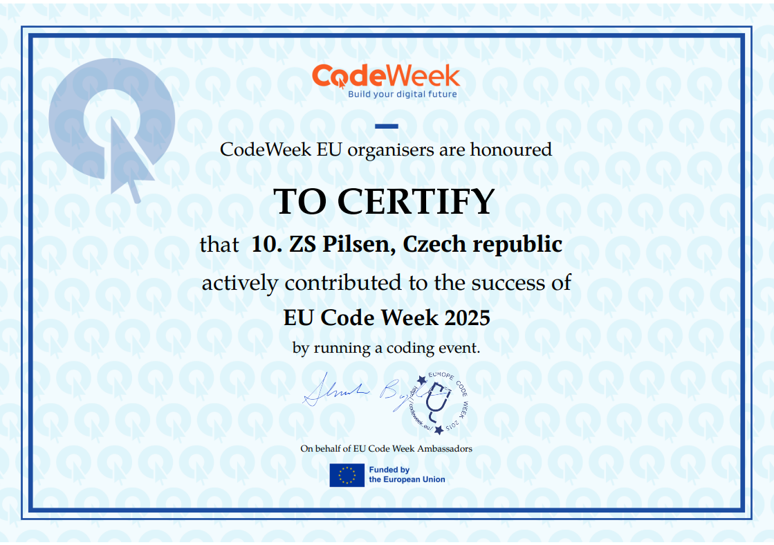 V týdnu od 20. do 24. října 2025 se naši žáci ponořili do světa algoritmizace, robotiky a programování v rámci CodeWeek 2025 (Evropský týden programování). Cílem bylo nejen porozumět tomu, jak fungují moderní technologie, ale také rozvíjet klíčové dovednosti potřebné pro život v 21. století – logické myšlení, spolupráci, kreativitu i schopnost řešit problémy.